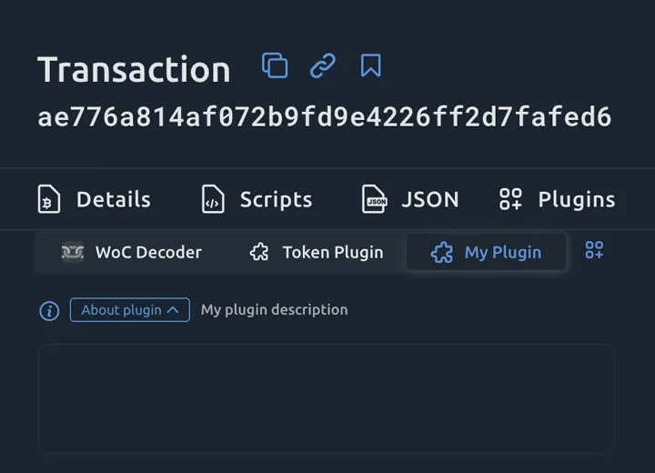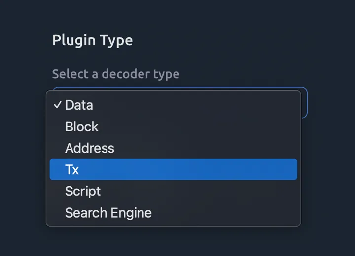 The plugin type will determine which page it should appear on: Block, Transaction, Address, Script or search pages.